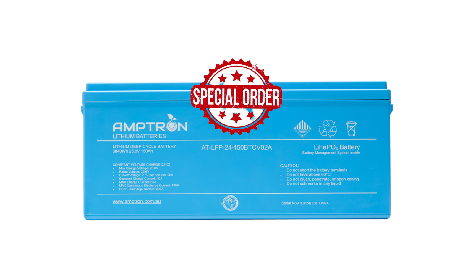 AMPTRON® 24V 150Ah Lithium LiFePO4 Batteries are an alternative replacement (AR) for most applications currently using a deep cycle Gel, AGM or Flooded Lead Acid battery. The maximum continuous discharge current is 100A and peak discharge current 200A for 10 seconds. This model includes Bluetooth & Data Communication.