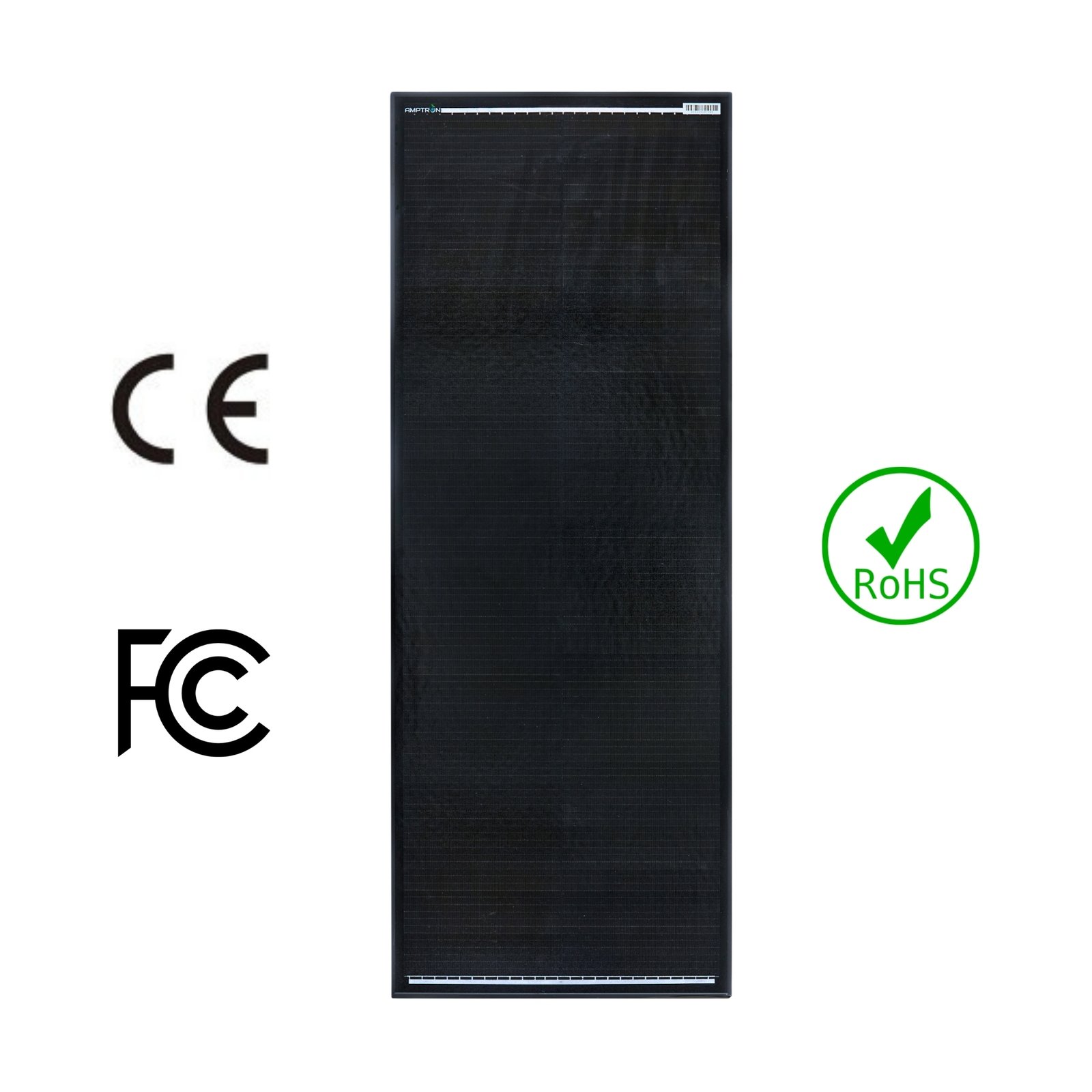 Highly Efficient Photovoltaic Power Source For RVs, Campers, Cabins, Boats and Home Backup Power Systems. Particularly useful for narrow spaces on vehicles, motorhomes or caravans where there is not much roof real-estate to work with. Our 100W Slimline panel is Ideal for charging 12V battery systems, or connect in series for high voltages .With its shingled cell design, our 100W solar panels have excellent shading tolerance, and are rugged and durable with great vibration and shock resistance. Easily add an aerodynamic mounting set for hassle free Caravan / Motorhome mounting and increased aerodynamic efficiency.
