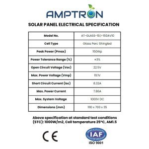 Maximize your off-grid power potential with Amptron® 150W Rigid Glass Shingled Solar Panel, a rugged and high-efficiency energy solution specifically engineered for the demanding environments of RVs, caravans, and marine applications.