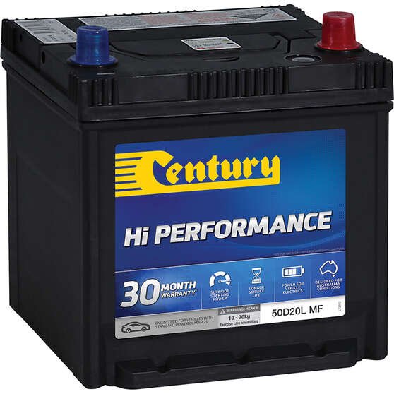 Century 50D20L MF automotive battery offers dependable cranking performance, durable construction and consistent reliability in Australian conditions. Century 50D20L battery with hard wearing internal components to reduce corrosion, enhance vibration resistance and provide dependable performance for cars.