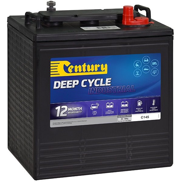 Century Deep Cycle Industrial batteries are designed for use in commercial and industrial machinery, built tough with heavy-duty components for exceptional vibration resistance.